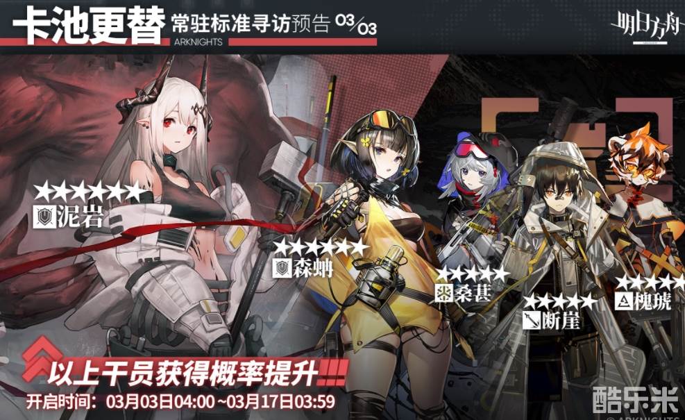 寻访说明:常驻标准寻访更新,该寻访中以下干员获得概率提升;