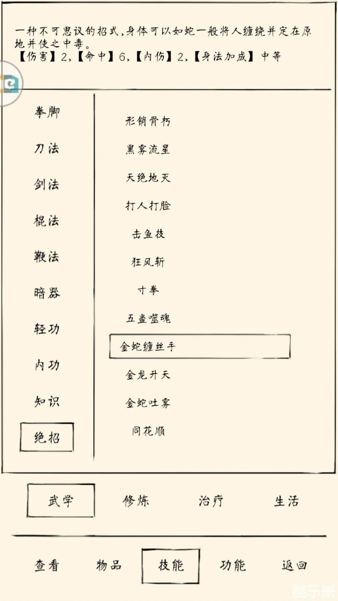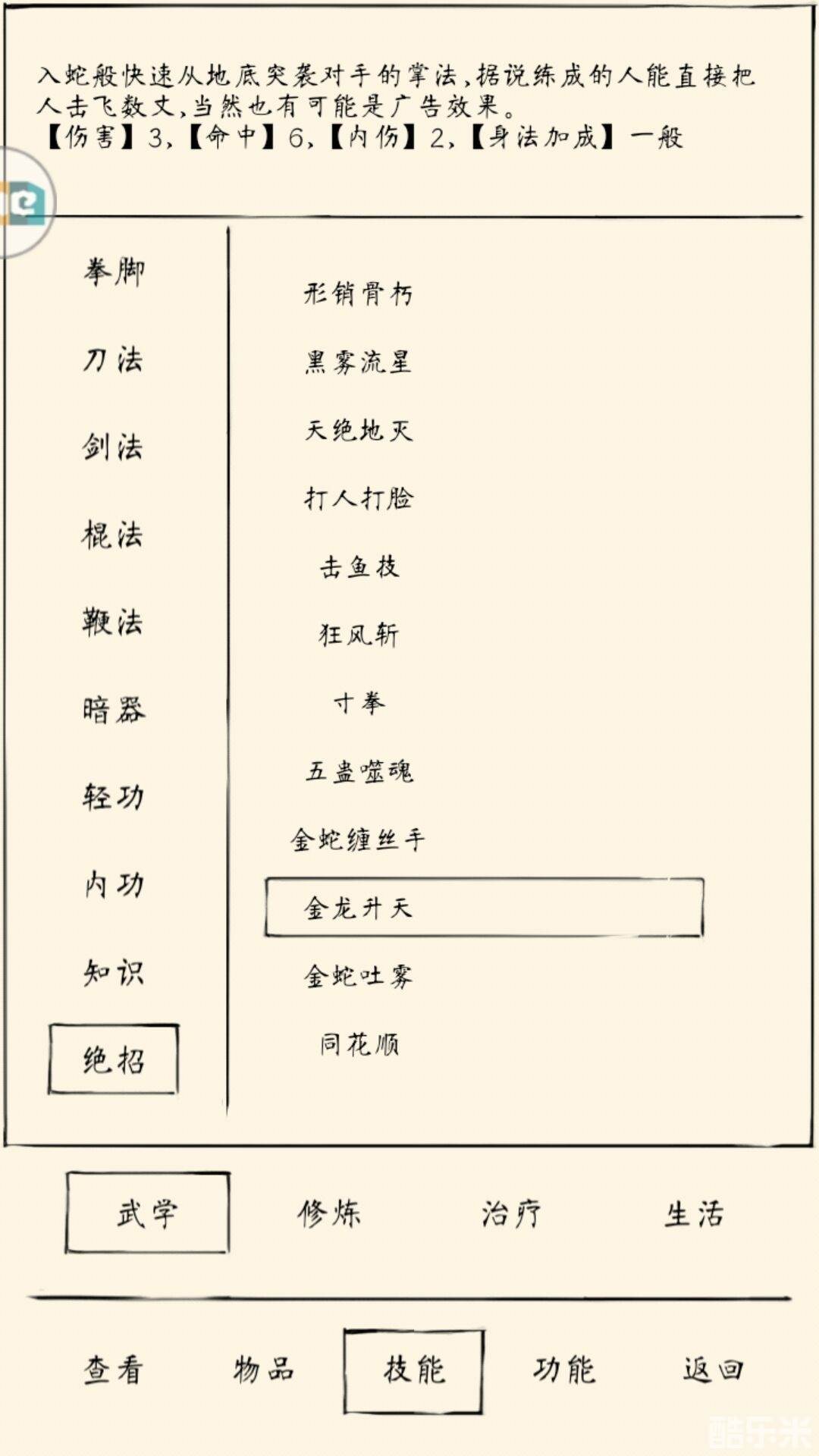 逍遥:金蛇游身掌+混元功+疾风步