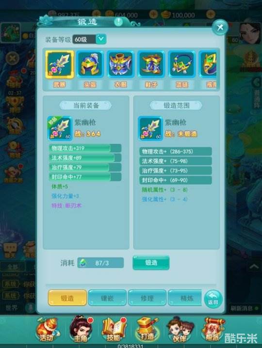 最后编辑于3年前在许多游戏里,神装都是非常难搞到的,可能要不停地刷副本,总之萌新是别想了。但是在《逍遥情缘》手游里,仅仅通过打造就有可能得到能够冲上排行榜第一的极品装备!今天,我们就来看看逍遥世界中打造装备到底是多么容易的一件事吧。