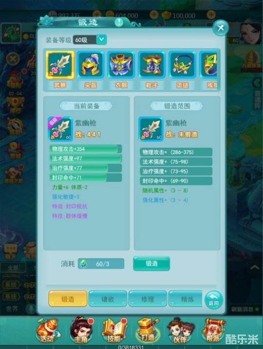 不过,锻造装备最主要并不是为了随机属性,而是为了特技和特效。在锻造的过程中有一定几率会刷出特技、特效,一件装备上最多同时存在一个特技,三个特效。拥有强大的特技和特效才是你变强的关键,也是锻造装备的最大意义。