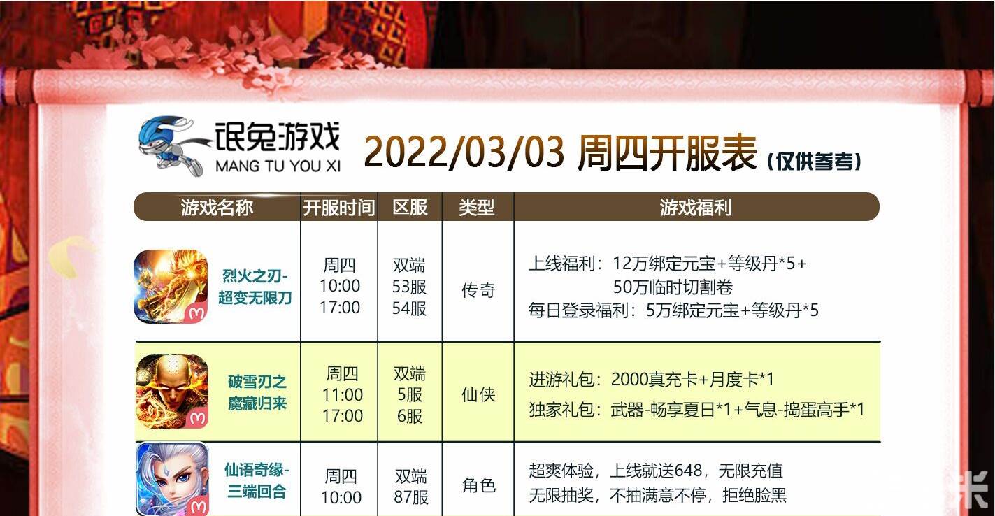 | 破雪刃之魔藏归来 | 魔藏5区( 苹果- 安卓) | 2022-03-03 11:00:00 |