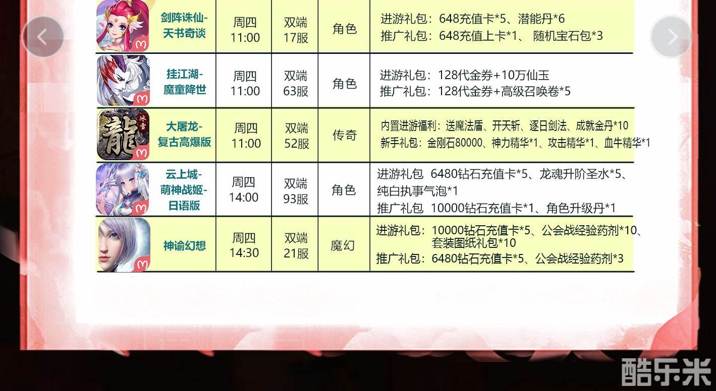 | 仙语奇缘-无限抽 | 天下87区( 苹果- 安卓) | 2022-03-03 10:00:00 |