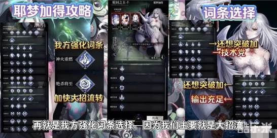 再就是我方强化词条选择:因为我们主要就是大招流,因此这里建议选:神火重燃、绝杀将至,快速冷却大和火,尽快击败boss。