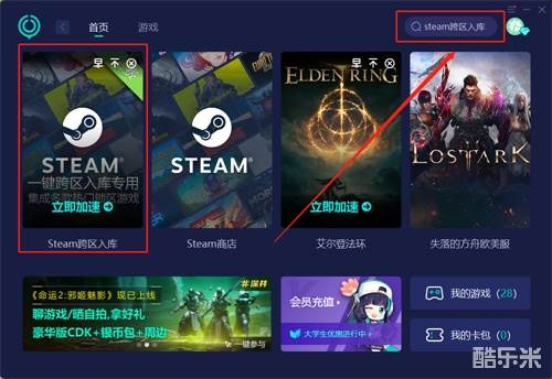 加速后,会弹出一个页面,在其中中找到《失落的方舟》,点击后就可以成功下载了。(不要忘了先打开steam哦)