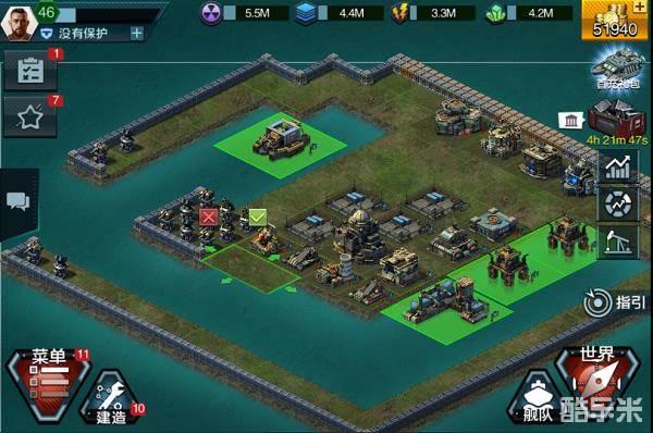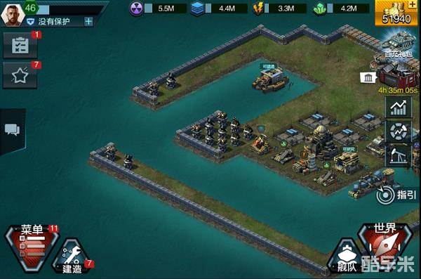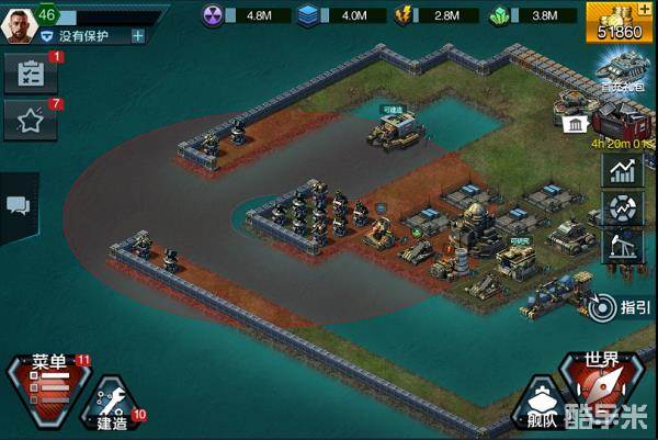 我们可以利用地形编辑,将重要的建筑仓库、大本营等放置在敌舰无法攻击到的位置,并利用地形将基地做成一个塔防形式的城防,预留给敌方单一的路线或路口。
