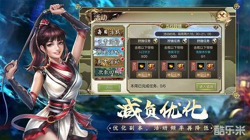 千呼万唤,减负优化又来临!英雄大会次数减半,频率安排更合理;五行狩猎调整为两周一次,周六晚不见不散;子女活动、心魔梦境关闭。活动次数虽然减少,但总体奖励不变,全面减负解放双手,轻松战斗,快乐翻倍!