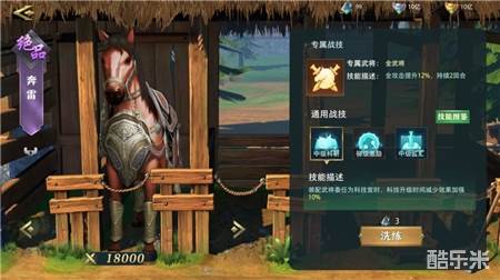 如果某一个武将是部队作战主力的话,尽量将其战马的通用战技洗练成战斗类战技,以提升队伍战斗力。