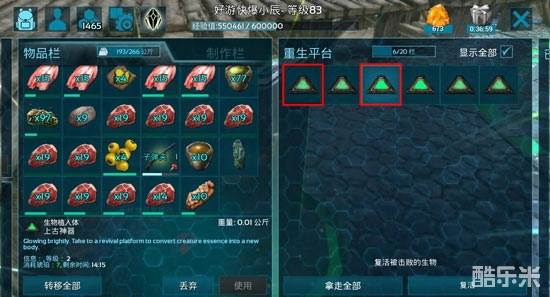 把生物死亡后的生物植入体放入重生平台或贡品终端,消耗一定数量琥珀即可复活,复活后,生物的驯服状态也是同死亡前一样的!
