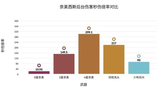 可以看出六星在两个电极的加持下,电极在后台相当于输出时多出了一个双枪洗头的伤害。并且奈美西斯的电极伤害也吃增伤,可以说双电极是十分变态的。