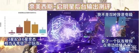 因此奈美强的不在增伤、不在回血,真的强的是这个电极的后台伤害,6星双电极直接是5星火枪离子灼烧伤害的翻倍还多,那能不强吗!