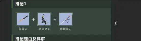二话不说上武器,这套搭配的武器我们需要一把红莲刃加一把冰风之矢和阿赖耶识,其中阿赖耶识作为主瑶输出武器优先升到三星,然后升冰风之矢到一星再升红莲刃到五星,最后升冰风之矢到六星即可完成最终阵容。