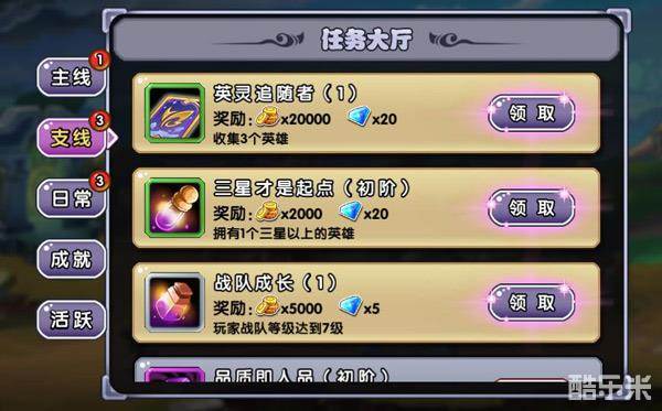 游戏各种体验累计的目标性悬赏任务,达到目标后将获得丰厚的资源奖励。