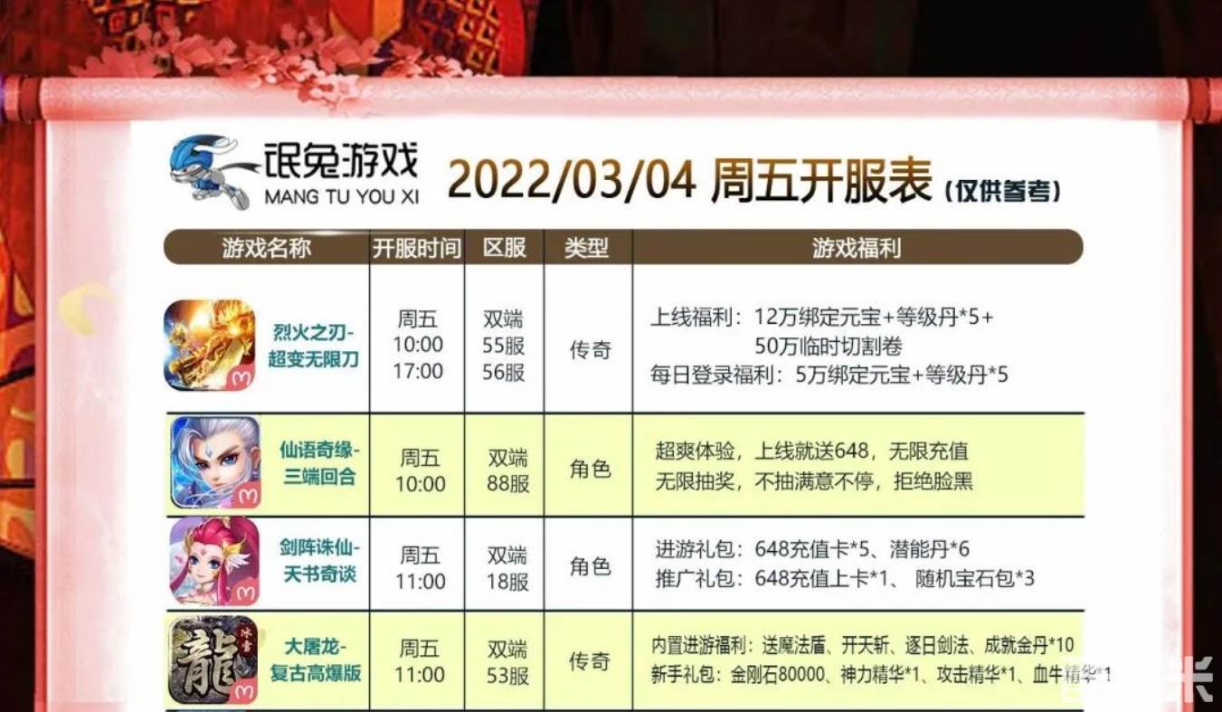 氓兔游戏官网-白狐游戏官网-3月4号开服表-周末活动0点开启