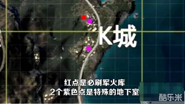 4、在K城有三处军火库在左侧城区有两个,右侧城区有一个,每次刷新位置都不同,可以参考下图。