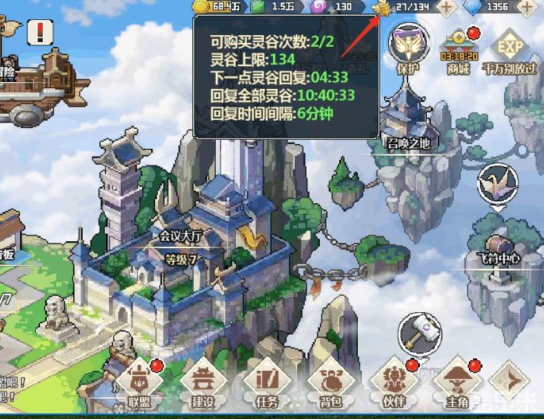 A:请您看一下右上角的“灵谷”(小麦图标)是否不足,如果灵谷消耗完毕,您可以选择通过付费补充、通过参与活跃活动获取或等待每日中午12:00,下午18:00点灵谷包发放。