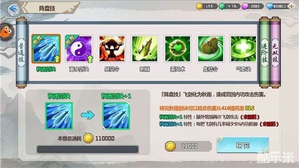 阵盘技是在战场上随时受您操控的战略技能,在双方上阵伙伴能力相当的情况下,选择恰当的时机释放阵盘技可为战局带来不可估量的优势,典籍室就是用来升级阵盘技能所用,而且它的等级将影响阵盘技能的品质上限,在战斗之余应留出资源来进行升级。