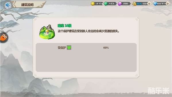 暗室的作用是您的护城大阵被破后,减免敌人掠夺您资源的数量,由暗室等级决定减免的百分比;这虽然是一个防御性的补救设施,但是未雨绸缪总是好的,毕竟谁也不能保证自己的城池万年不破,所以投资止损还是值得的。
