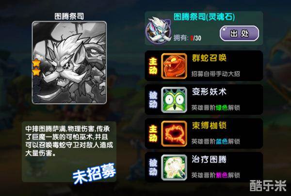 群蛇之王《暴走萌部落2》图腾祭司英雄攻略介绍