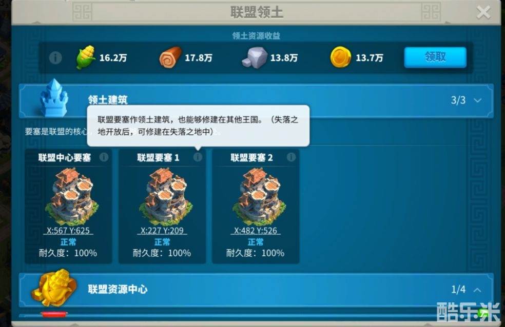 首先玩家们需要点击联盟,然后点击领土,选择领土建筑,最后点击联盟要塞中心就可以了,玩家们需要一百万的联盟积分才能建造哦,并且官职还要达到R4级别才可以,如果玩家们只是普通的成员就没法接触这个高级的玩法了。