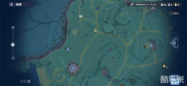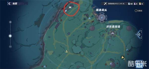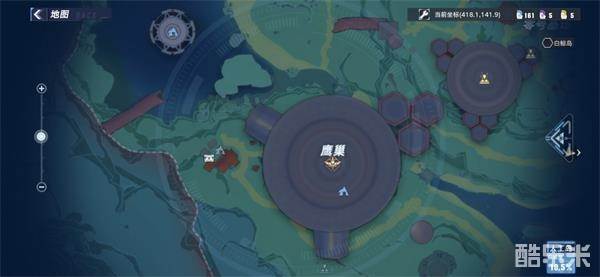 第四本先来到上图标签的位置,然后到达位置后击碎岩石堆,然后进入传送门传送到浮空岛上后,位置在标签处,具体位置在下图,外环上。