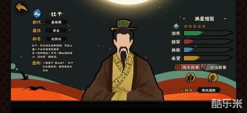 一技能低腐败时享受粮食和战斗力加成,能种能打,二技能要到科技10时才能解锁,比较鸡肋,个人不太推荐,如果没有比干的话可以上这张。