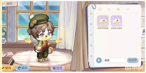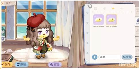 枣红色帽子随性地扣在羊毛卷棕色长发上,一手调料盘,一手画具包。紫色爱心瞳孔,脸上还不小心沾到了一点颜料,调皮又呆萌。