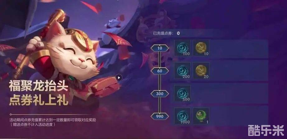 又一波福利活动来啦!从3月4日至3月7日,召唤师们累计充值点券。