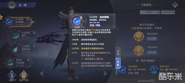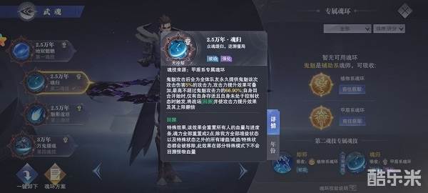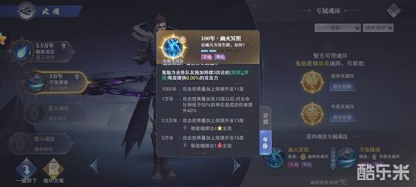 第一魂技地狱魍魉回复我方全体一点魂力并且施加一层减伤效果,最多可以叠加三层,也就是说让自己变得更肉了,同时魂环打到五万年时可以开启群体减伤。暗影疾踪这个技能呢,对敌方造成三段伤害,每段伤害有概率随机为我方两个英雄加一点魂力,如果敌方处于重伤状态,减少重伤状态的持续时间,那么必定每次攻击回复两点魂力。