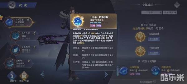 然后是第三魂技魅影很简单的效果,普通攻击一次,然后加速自己的行动条移动,注意这里不是加速,只是行动条动了。速度内有任何变化。厉鬼追命有一定的基础概率给地方重伤效果。