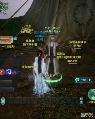 2、然后我们到了以后往前走几步就能看到一个头上有金黄色任务卷轴的老头——朽月。