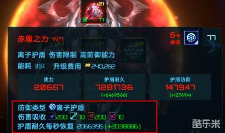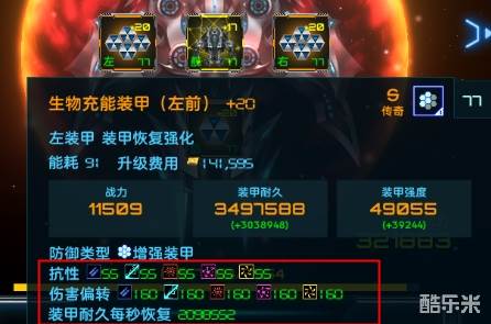 【防御装备】:分为护盾和装甲,主要增加的就是装甲耐久,装甲强度,护盾耐久和护盾强度。有些装备还可以增加装甲和护盾的每秒修复。在这里点击护盾和装甲可以看到其详细的面板