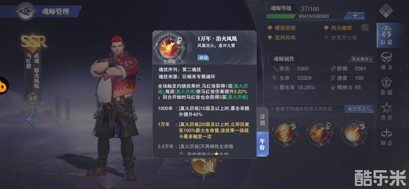 首先初始100元送一个,其次马红俊的2魂环的被动技能能够提高暴击率配合上辅助及其他方面的增益,能够有效打出暴击爆伤。