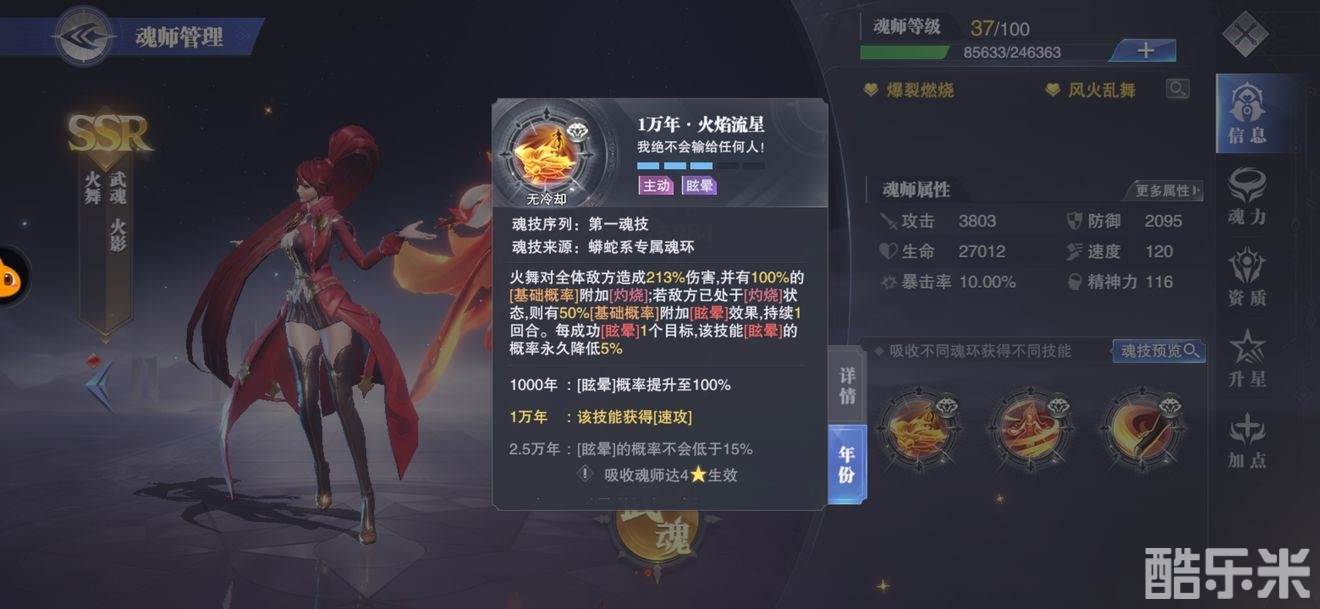 2、第一手万年魂环优先选择蟒蛇系给火舞用,速攻起手二火直接眩晕敌方全体,是前期过度的最佳之选。