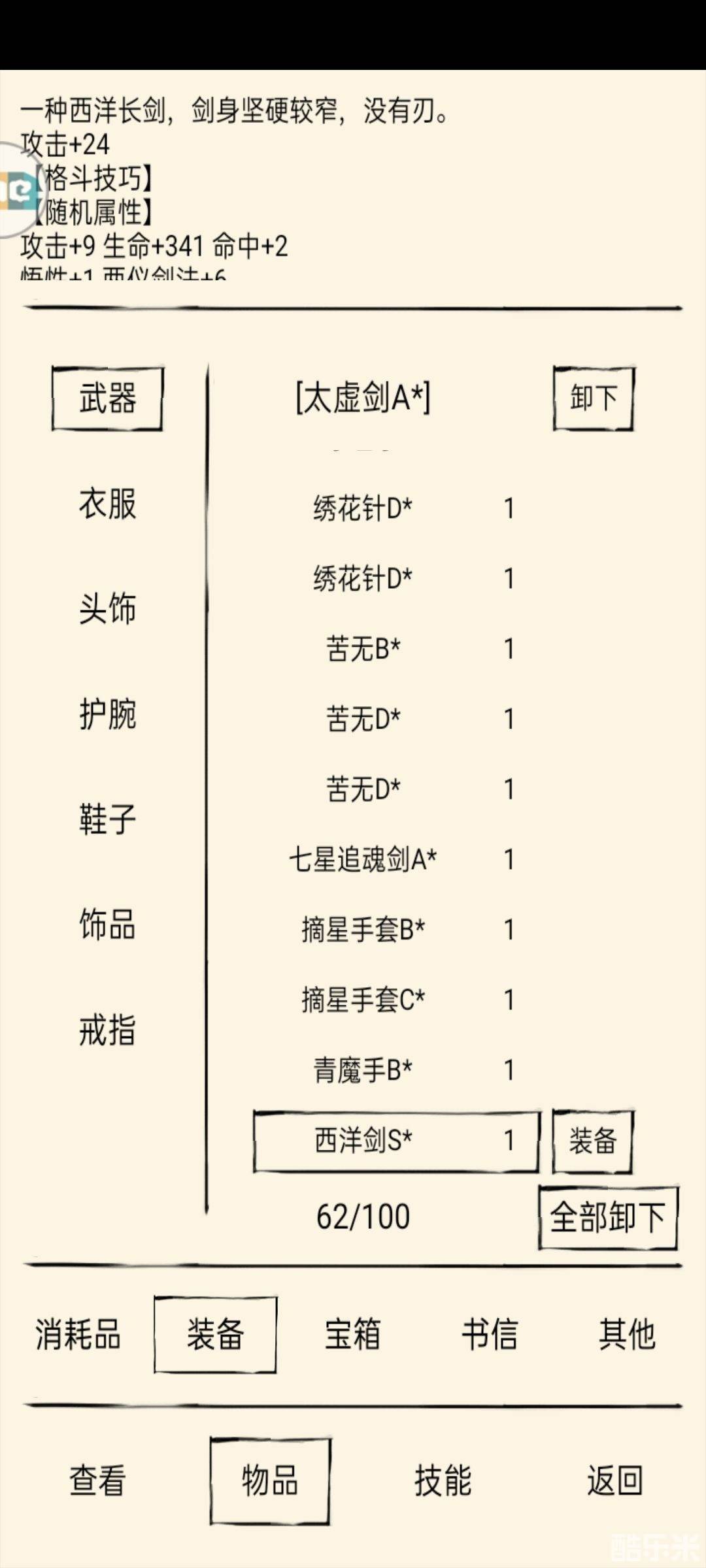 西洋剑的基础面板是24点“攻击”和2点“命中”,其格斗技巧是在战斗过程中,有10%的概率能够缴械敌人3回合,也就是限制敌人三个回合的行动。
