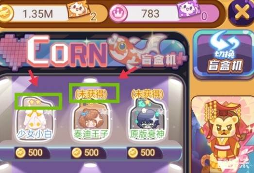 要善用金币抽奖,扭蛋机左下方有两个按钮“刷新”和“提示”。按下提示之后我们可以看到随机三个盲盒的内容。