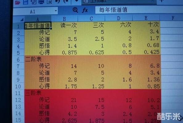 下面说一下怎么冲悟道等级。同阶的书使用、参悟、领悟获得的悟道值是一样的(参悟获得2倍阶级的悟道值),所以读一遍只需两年的传记是重点。以无限读传记为基准,一阶书一年可以获得1悟道值,二阶2悟道值,三阶3悟道值。其他书如果加上领悟的6倍达到单位值就可以读。下表是一二三阶书读各次数每年获得的悟道值: