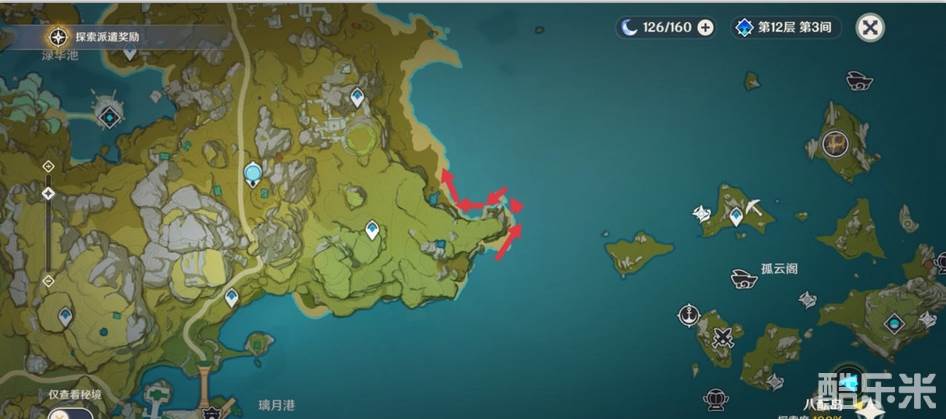 在开始刷圣遗物之后就会感受到狗粮的稀缺,这个东西真的麻烦,除了锄大地和打本(有两个npc可以买一点点)没啥获取途径,如果时间充裕且闲可以到稻妻的清籁丸船舱里搜刮一下。前往路线如图,