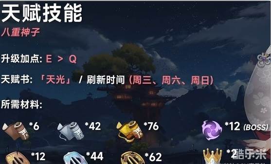 原神八重神子天赋技能养成材料: