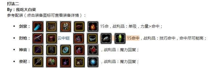 对自己操作有信心的同学可以试试下面这套烈枪,烈枪和剑豪的战利品完全不带命中,利用苍锤的抑制和高伤害快速清手,缺点是2分钟后的陨石要处理仔细(神官可以同时给到3人buff)