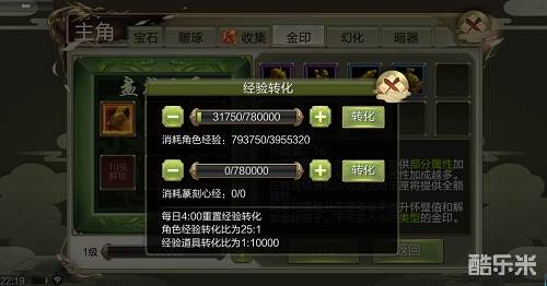 当侠士集齐某一种金印碎片后,可在乾坤袋中进行合成;而多余的金印碎片可在混元囊中提炼为【金晶】。