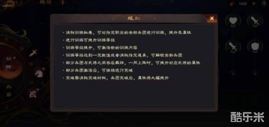 训练玩法,可以对指定职业的全部兵团进行训练,提升该职业下所有兵团的属性。同时进行训练还可以提升训练等级,当训练等级达到一定数值后,便可以解锁全新兵团。