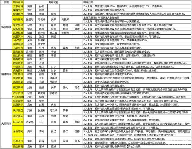 在武将系统中,武将界面的左下角点击“羁绊”可查看相应武将的羁绊。神将、名将、良将拥有3个羁绊,勇将仅有2个羁绊。根据羁绊品质、加成,羁绊分为熟练羁绊、精通羁绊、大师羁绊,品质越高的羁绊加成效果越大。