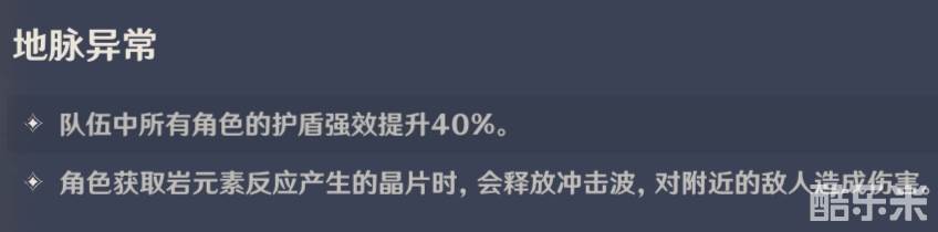 由于增益为岩元素相关的护盾强效与结晶反应释放冲击波,再加上秘境中存在较多的史莱姆(自身携带元素),所以推荐使用岩元素角色进行秘境挑战