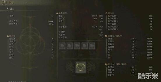 属性加点上面的话主要偏向血量与感应属性,图为最终通关属性(带大卢恩),前期优先加点血量,之后点出必要的灵活和一点耐力,剩下的全部堆感应;