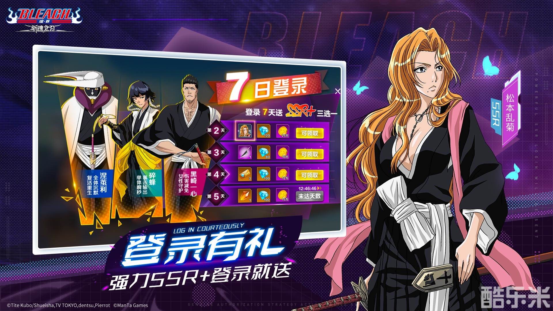 连续登录2天就能领走松本乱菊,连登7天,涅茧利、碎蜂、黑崎一心三选一喔!除此之外,每天还有各种日常活动送英雄卡牌碎片,金币、钻石招募到心仪英雄的概率也极高喔!消耗钻石领SSR+武器魂,连续推图豪华招募券拿到手软……20多种开服活动爽到没朋友!另外只要每天登录,四枫院夜一以黑猫形态不定期送你惊喜成长礼包!