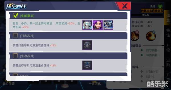 ★芯片强化:使用晶体管可以强化芯片,增加装备了该芯片的英雄的生命和攻击,最高等级40;同一个英雄装备的芯片强化到一定等级时,可激活强化大师,增强英雄的攻击生命防御属性。