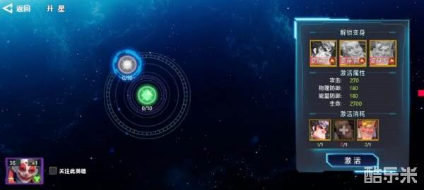 主角有5个星级,只能按照顺序依次激活,激活后即可开启变身功能,已激活的星级还可以按照条件进行突破,突破后能获得大量的属性加成。