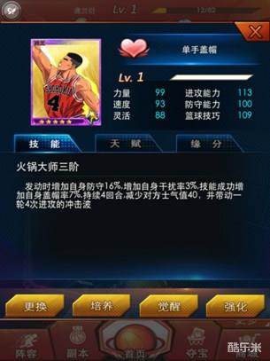 《灌篮高手》卡牌的基础属性有力量、速度、灵活,基础能力有进攻能力、防守能力、篮球技巧,提升基础属性对基础能力有加成的效果。