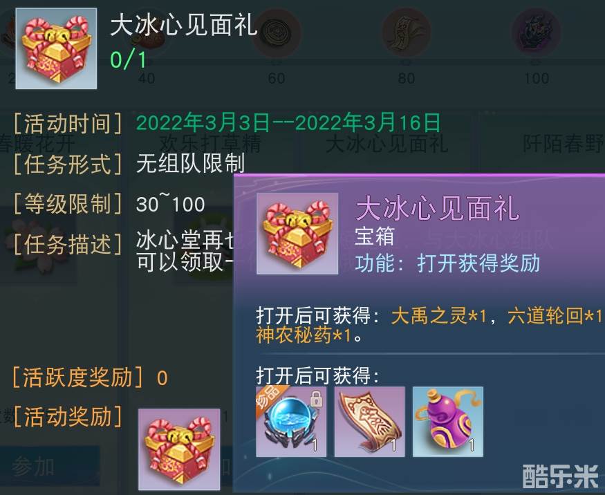 成女冰心体型上线后,少侠们还可在3月3日至3月16日期间,参加游戏内举办的【冰心庆典】活动。活动期间,少侠们只需根据活动指引,完成一系列与大冰心有关的庆典任务,即可获得大禹之灵、修炼丹、漩汐灵元、熔炼晶石等实惠好礼。与大冰心组队闯荡副本的少侠,还可额外获得一份【大冰心见面礼】。六道轮回、神农秘药和大禹之灵等奖励等你来拿。