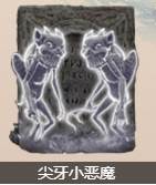 寄宿着灵魂的骨灰,能召唤2只尖牙小恶魔的骨灰。动作敏捷,会丢掷魔力壶,是擅长扰乱敌人的灵魂。这两只小恶魔的感情十分要好。